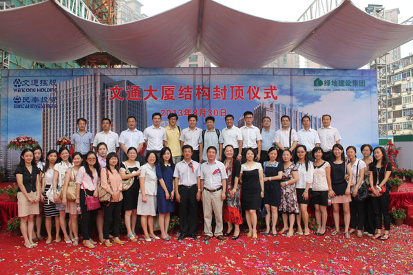 文通集團董事長李剛、文通集團副董事長孔慶然,民泰集團董事長趙月圓、綠地建設(shè)集團董事長談德勤、常務(wù)副總經(jīng)理張偉、黨委書記李廣武以及文通集團、民泰集團所有員工和綠地建設(shè)集團的建設(shè)者們和監(jiān)理單位、施工單位的所有代表出席了此次活動。