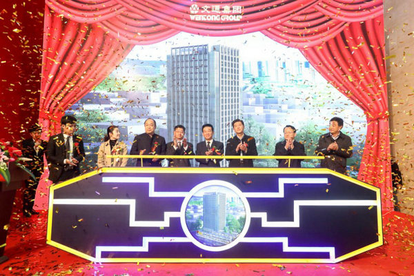 后,文通集團董事長張永勝先生、無錫市政協(xié)副主席蔣偉建先生、內(nèi)蒙古察右后旗委書記紀全富先生、山西省文水縣委書記梁寶明先生、上海唯中投資集團有限公司董事長詹復成先生、上海金欣投資有限公司董事長武崇貴先生、文通集團監(jiān)事會主席孔慧娟女士、上海申之禾化工集團有限公司李文晟先生一起啟動文通國際廣場落成儀式,伴隨著鳴炮、奏樂聲,整場典禮在歡樂祥和的氛圍中圓滿落幕。