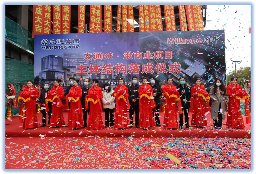 2021年1月25日10時(shí)18分,位于嘉定區(qū)曹安公路、黃家花園路口的純商業(yè)項(xiàng)目---文通86·湫項(xiàng)目舉行隆重的主體結(jié)構(gòu)封頂儀式。